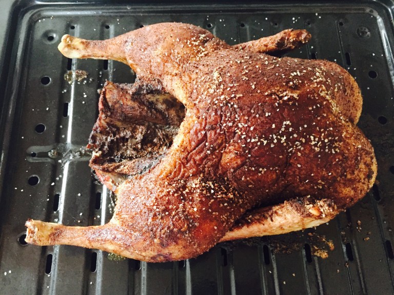 Season with a bunch of Chinese Five Spice, Salt, and Pepper.